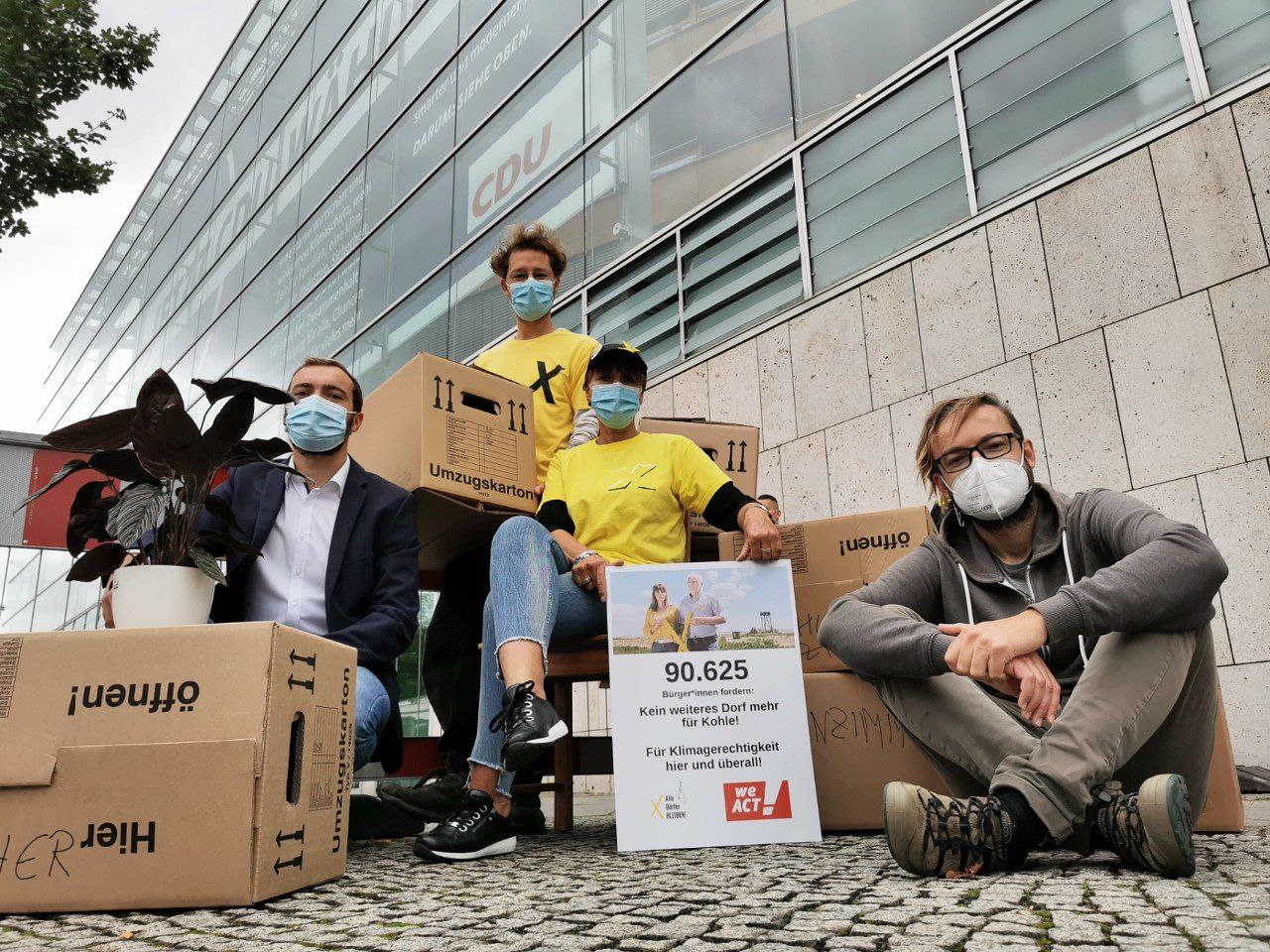 unsere Dörfer und Häuser sollen für einen Braunkohle-Tagebau enteignet und zerstört werden. Viele Menschen verlieren ihr Zuhause. Deshalb haben wir uns am vergangenen Freitag aus dem Rheinland auf den Weg nach Berlin gemacht, um der CDU-Parteizentrale einen Besuch abzustatten – mit Umzugskartons, einem Plakat zu unserer Petition, Topfpflanzen und Möbeln. Wir wollten symbolisch bei der CDU einziehen und auf unsere